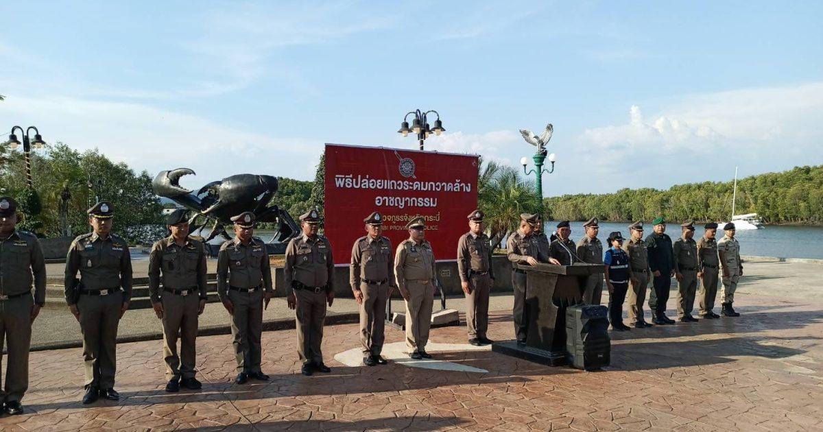 (๑ เม.ย. ๖๗) ณ บริเวณลานประติมากรรมปูดำ อำเภอเมือง จังหวัดกระบี่ พล.ต.ต.ตานิตย์ รามดิษฐ์ ผบก.ภ.จว.กระบี่ เป็นประธานในพิธีปล่อยแถวระดมกวาดล้างอาชญากรรมในช่วงเทศกาลสงกรานต์ 2567 โดยมีผู้เข้าร่วมพิธีประกอบด้วย พ.ต.อ.เจษฎา แสงสุรีย์ ผกก.สภ.อ่าวนาง ,ข้าราชการตำรวจในสังกัดตำรวจภูธรจังหวัดกระบี่ ,เจ้าหน้าที่ฝ่ายทหาร ,เจ้าหน้าที่ฝ่ายปกครอง และอาสาสมัครจากหน่วยงานต่างๆ โดยมีเป้าหมายในการระดมกวาดล้างอาชญากรรม ตรวจค้น จับกุมอาวุธปืน อาวุธสงคราม วัตถุระเบิด ยาเสพติด ฯ เพื่อสร้างความเชื่อมั่นและศรัทธาในการดูแลรักษาความปลอดภัยในชีวิตและทรัพย์สินของประชาชนตลอดจนนักท่องเที่ยว และเพื่อตัดโอกาสของกลุ่มมิจฉาชีพที่อาจจะก่อเหตุร้ายต่างๆ