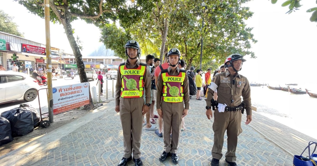 ( ๑๘ ธ.ค. ๖๗ ) เวลา๐๘.๕๐น. อ่าวนาง 60 สายตรวจจราจร นสต.ฝึกงาน ว.4 อำนวยความสะดวกด้านการจราจรและดูแลความปลอดภัยนักท่องเที่ยว ช่วงลงเรือท่องเที่ยวทางทะเล บริเวณหน้าหาดอ่าวนาง
