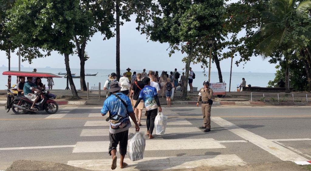 อำนวยความสะดวกด้านการจราจร ดูแลความปลอดภัยนักท่องเที่ยว ช่วงลงเรือท่องเที่ยวทางทะเล