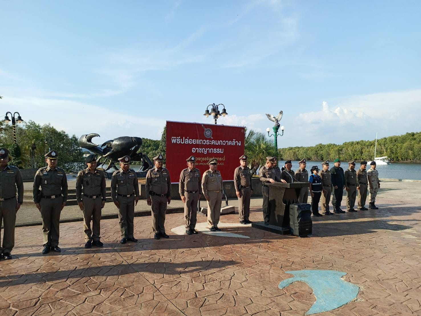 (๑ เม.ย. ๖๗) ณ บริเวณลานประติมากรรมปูดำ อำเภอเมือง จังหวัดกระบี่ พล.ต.ต.ตานิตย์ รามดิษฐ์ ผบก.ภ.จว.กร