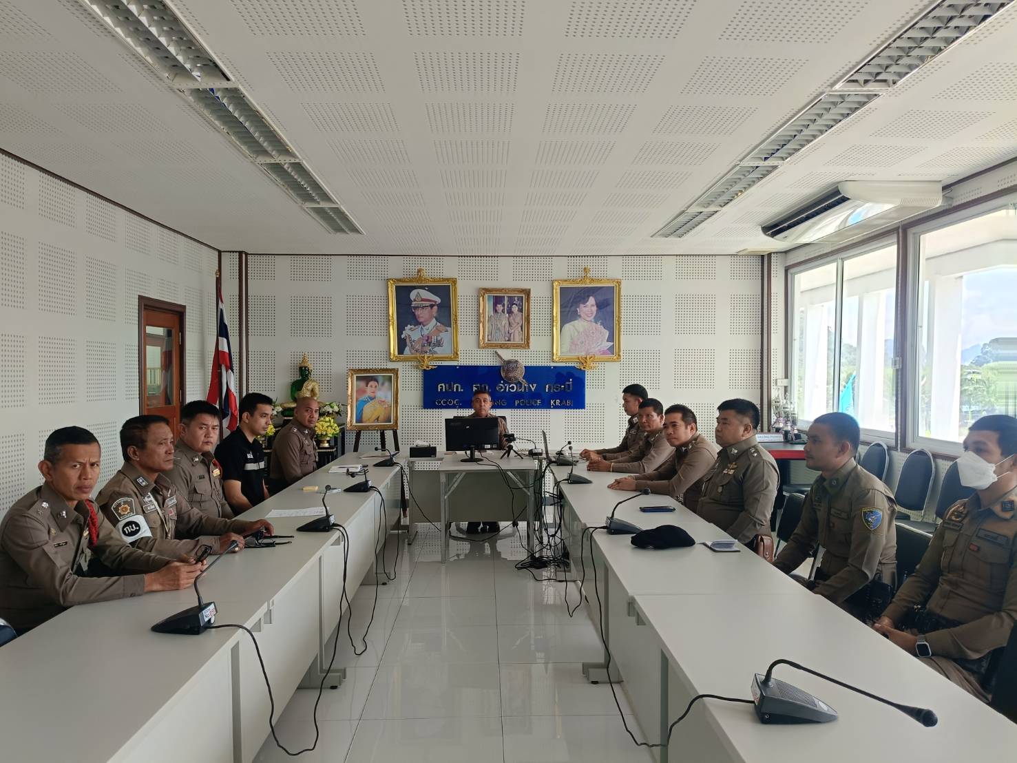 พ.ต.อ.เจษฎา แสงสุรีย์ ผกก.สภ.อ่าวนาง พ พร้อมด้วยพ.ต.ท.ราชันย์ โกบทอง รอง ผกก.ป.สภ.อ่าวนาง มีการประชุ